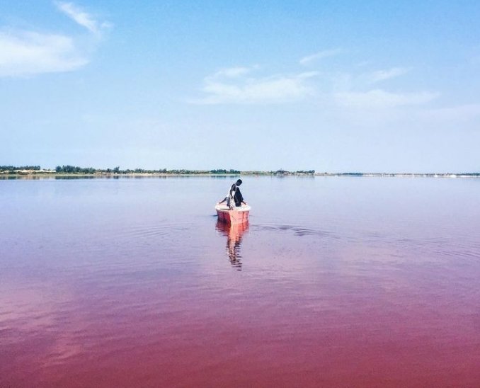 Le Lac Rose, aussi appelé Lac Retba par le peuple peul, tient sa couleur rose d’une algue. La couleur devient vive quand il fait chaud et quand le vent souffle et remue le fond de l’eau. Près de 24.000 tonnes de sel sont récoltées chaque année sur ce lac de quatre kilomètres de long et 800 mètres de large.